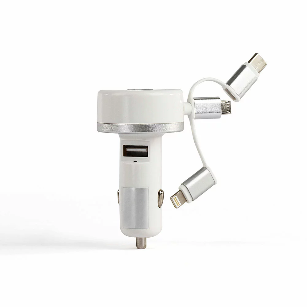 Câble de 75cm rétractable intégré et 3 connecteurs Lightning, Type C et micro USB