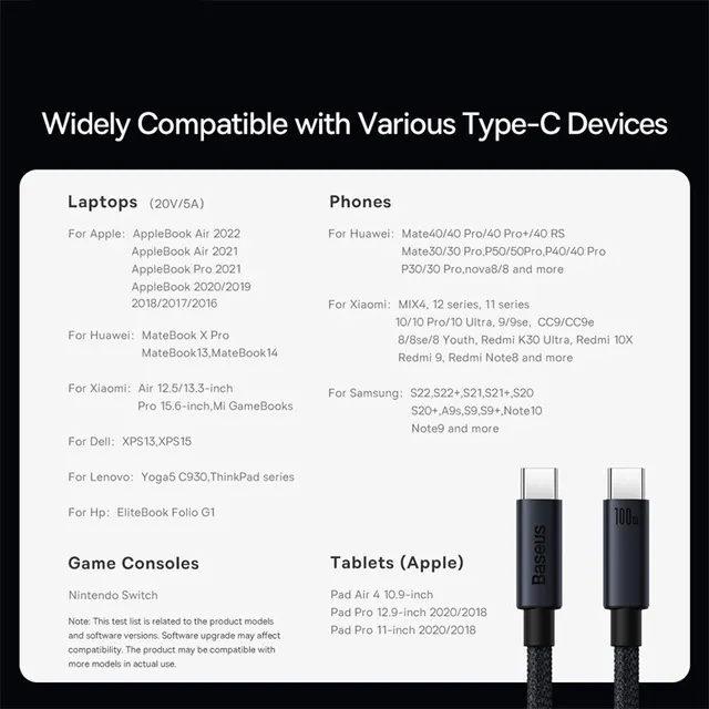 • Charge rapide :Chargez rapidement vos appareils avec le câble USB C vers Type C de Baseus 100W.