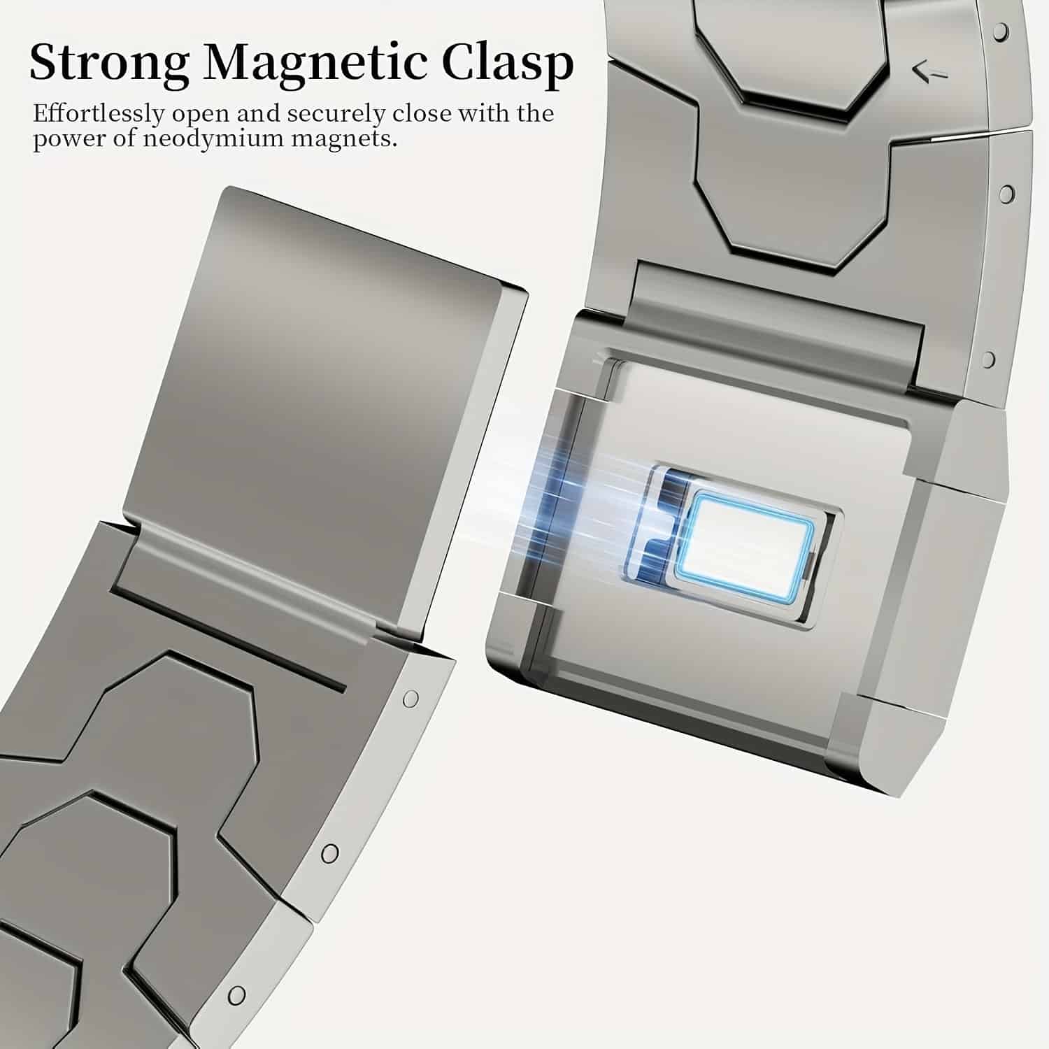Conception plus sûre : La boucle pliante en métal et les doubles boutons peuvent facilement et en toute sécurité verrouiller la sangle, protégeant ainsi votre montre de manière plus sûre. En choisissant le design de bracelet en titane, le poids ne constitue pas une charge pour le poignet. Les bords de notre bracelet sont suffisamment lisses pour un port facile et confortable. De plus, il sera un point fort décoratif sur votre corps