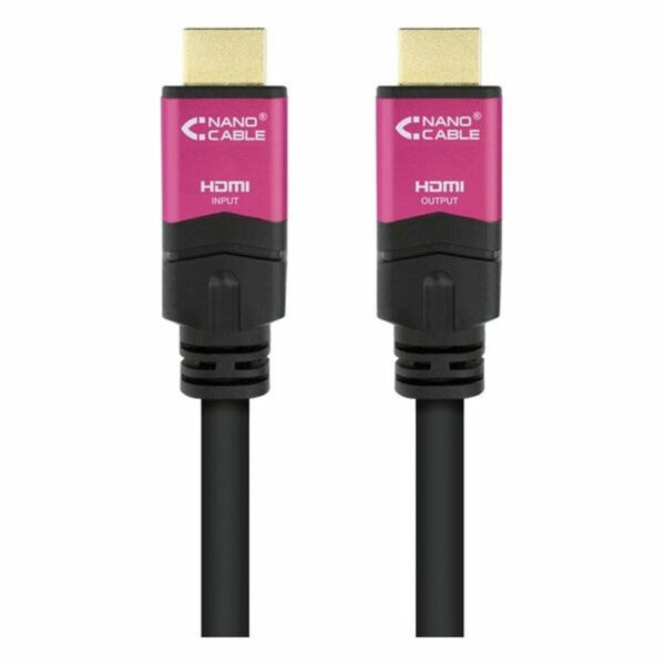 Nanocable 10.15.3725. Longueur de câble: 25 m, Connecteur 1: HDMI Type A (Standard), Genre de connecteur 1: Mâle, Connecteur 2: HDMI Type A (Standard), Genre de connecteur 2: Mâle, Contacts du connecteur de placage: Or, Version HDMI: 2.0, Compatibilité 3D, Canal de retour audio (ARC, Audio Return Channel), Couleur du produit: Noir, Rose