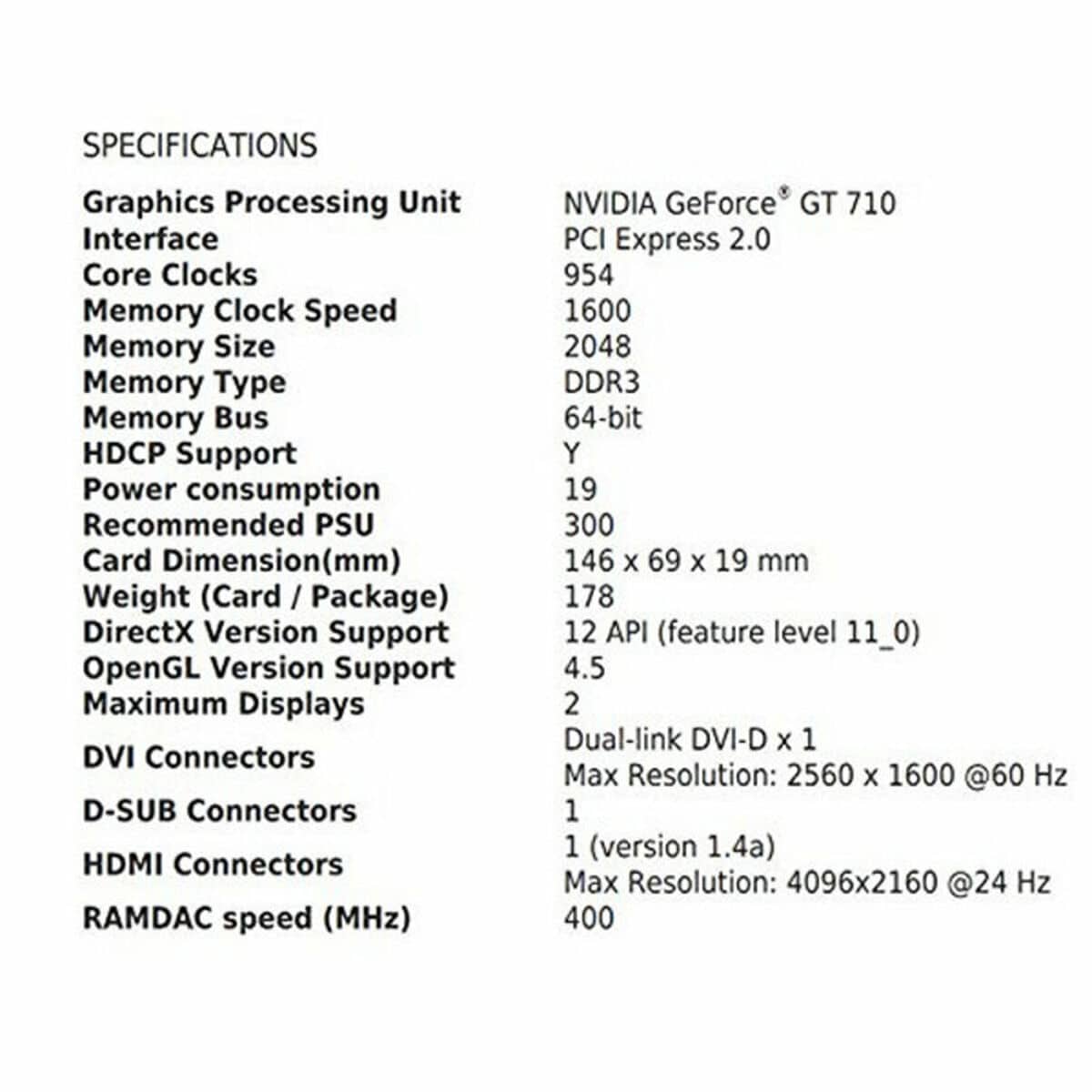 - Chipset: NVIDIA GeForce GT 710