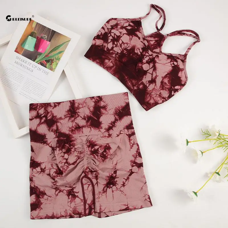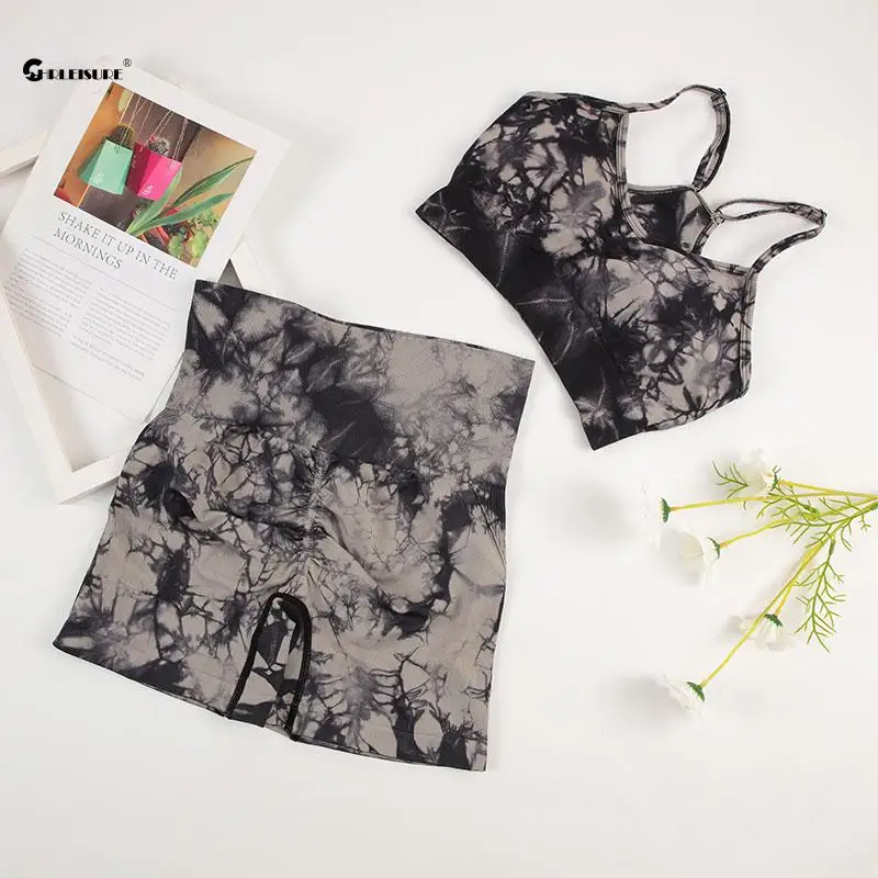 CHRLEISURE-Ensemble de yoga sans couture pour femme, short de cyclisme trempé, soutien-gorge de course, survêtement de sport, tenue de fitness élastique