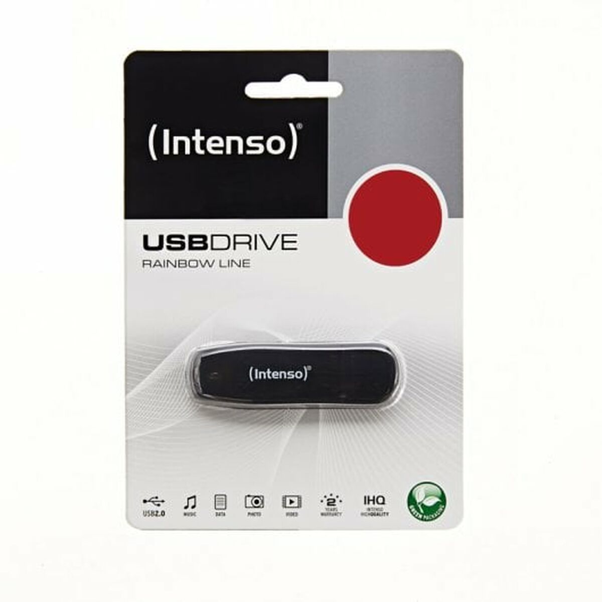 Intenso Rainbow Line. Capacité: 16 Go, Interface de l’appareil: USB Type-A, Version USB: 2.0, Vitesse de lecture: 28 Mo/s, Vitesse d’écriture: 6,5 Mo/s. Format: Casquette. Poids: 7 g. Couleur du produit: Noir
