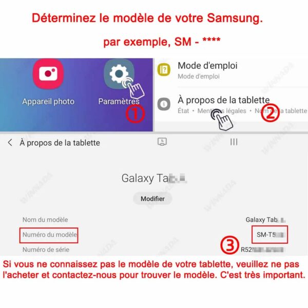 Si vous ne connaissez pas votre modèle de tablette, veuillez ne pas l’acheter et nous contacter pour trouver le modèle. Je vous remercie.