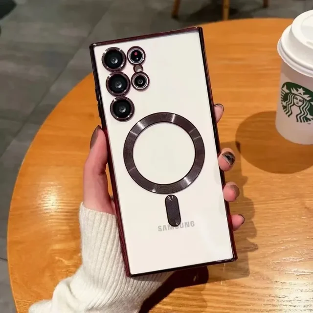Coque transparente en silicone pour Samsung Galaxy, placage transparent de luxe, Magsafe, charge sans fil, S24, S21, S22, S23, Ultra Plus