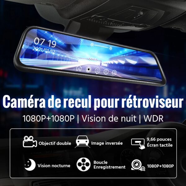 Écran tactile de 9.66 pouces, plus pratique à utiliser, vous pouvez utiliser très rapidement la caméra de voiture, de sorte que vous êtes plus en sécurité dans la conduite.