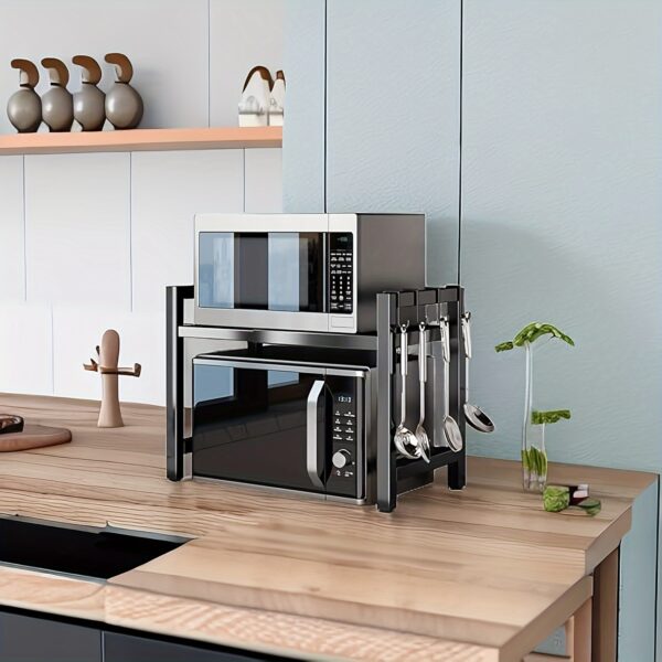 Assistant de cuisine peu encombrant Dites adieu au désordre dans la cuisine ! Grâce à l’étagère à micro-ondes, vous pouvez vos ustensiles de cuisine sur l’étagère et gagner beaucoup d’espace pour cuisiner, rendre votre cuisine propre et bien rangée ; Gagnez également du temps lors de la cuisson des aliments.