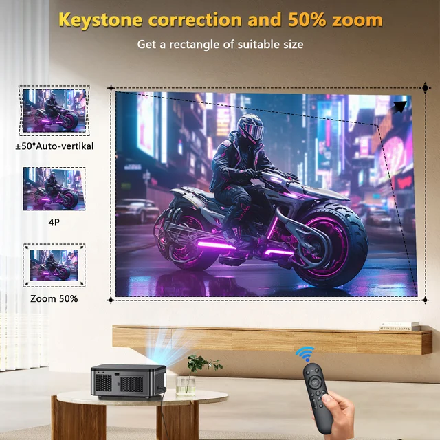 —Correction Keystone automatique innovante 6D et fonction de zoom 100-50%: