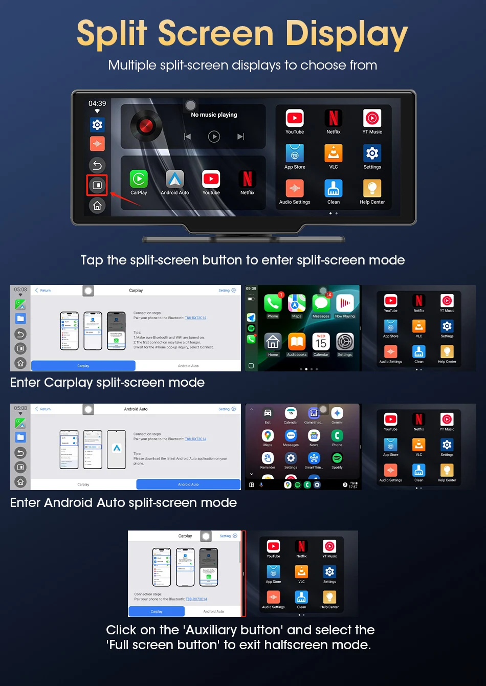 3. Added split screen function. You can use Carplay navigation on the left. Use YouTube or Netflix for entertainment on the right.