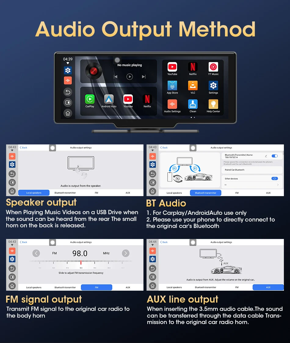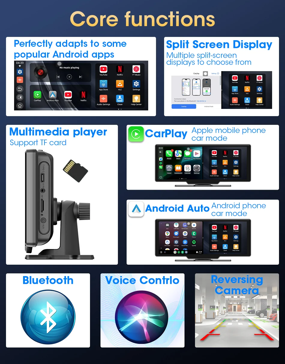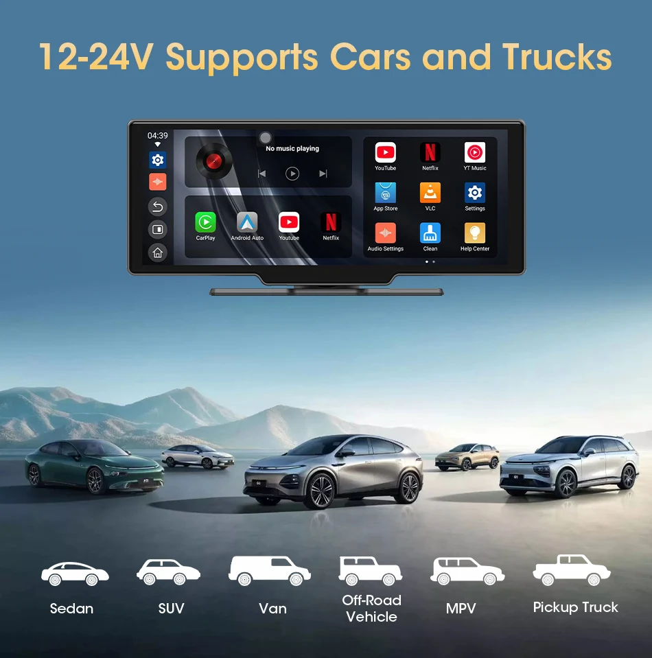 1. Not only does it support CarPlay and Android Auto, but it also supports YouTube and Netflix. Make your journey richer and more interesting.