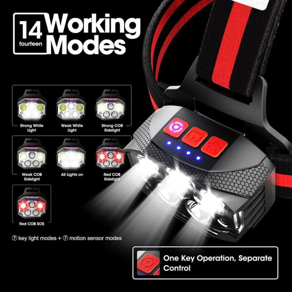 【Équipement de fonctionnement】: Mode normal en 6ème vitesse, 3XPE lumière blanche forte-3XPE lumière blanche faible-2COB lumière blanche forte-2COB lumière blanche faible-COB lumière rouge-COB lumière rouge clignotant, mode induction en 6ème vitesse;