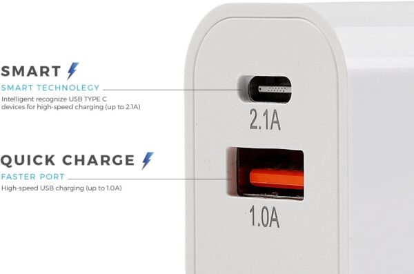 - Conception à 2 ports : ce chargeur permet de charger 2 appareils simultanément. Il peut ajuster automatiquement la tension de charge de votre appareil et charger tous les appareils compatibles à la vitesse optimale. Ce chargeur peut vous faire gagner beaucoup de temps et résoudre le problème du manque de prises à la maison ou au bureau.