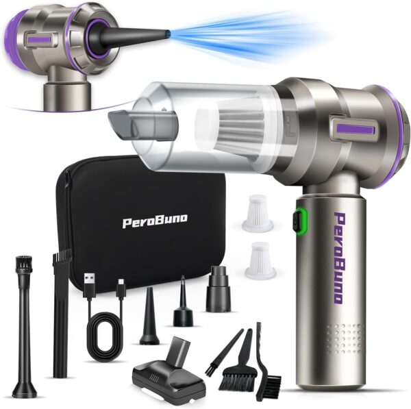 PeroBuno Aspirateur à Main 2 en 1 sans Fil, 18KPA, 35Mins de Temps, Aspirateur de Voiture Puissant, air comprimé avec Moteur sans Balai et Type-C pour Voiture, Maison, Nettoyage de Bureau