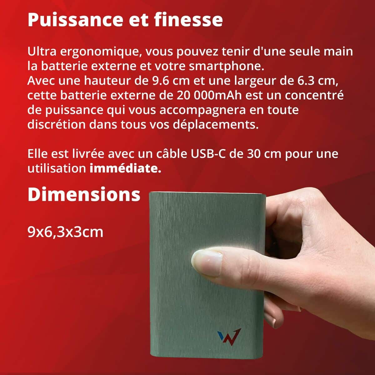 - Capacité de la batterie: 20000 mAh