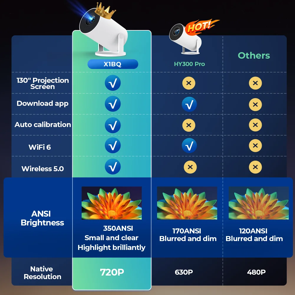 Le LynCast X1BQ est un vidéoprojecteur nouvelle génération conçu pour un usage cinéma maison, bureau ou chambre. Grâce à sa rotation à 180°, il s’adapte facilement à tous les angles de projection, même au plafond.