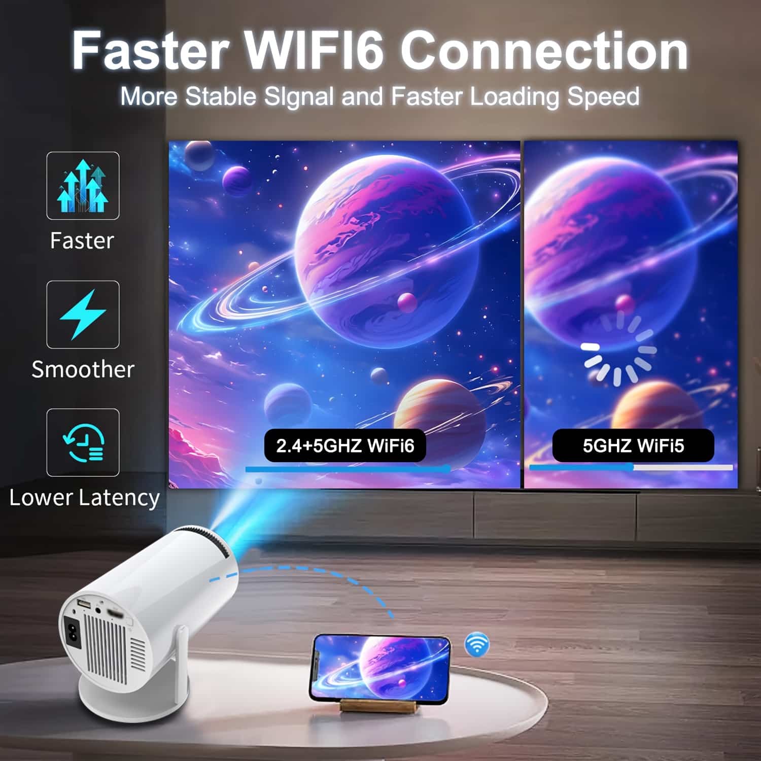 Qualité d’image native 1080P + décodage 4K : Résolution HD de 1980×1080P, prend en charge le décodage vidéo HDR 4K et un affichage lumineux de 120 lumens ANSI pour des couleurs délicates dans des environnements sombres, idéal pour le home cinéma, les cours en ligne et la projection de jeux