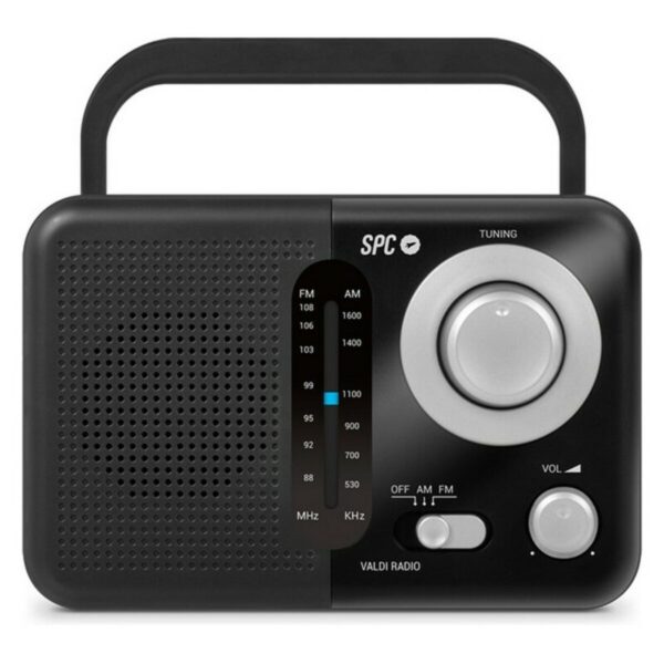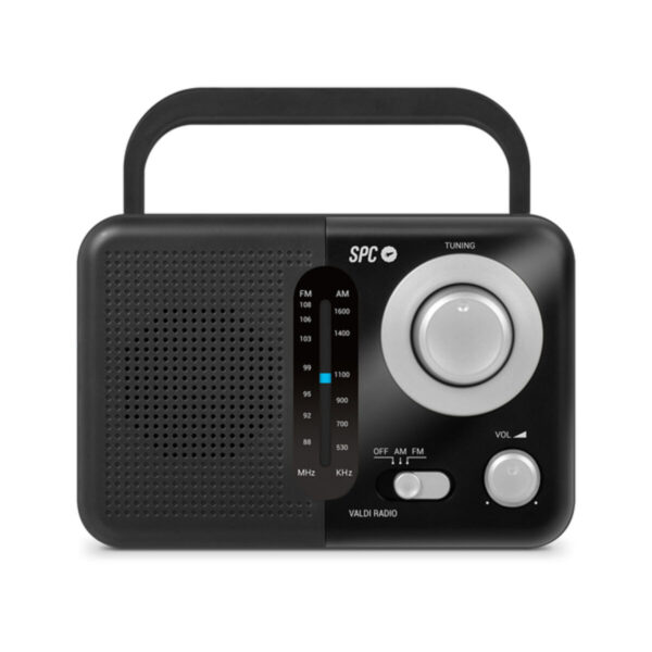 Le SPC Valdi de SPC est une radio AM/FM portable conçue pour ceux qui recherchent une solution pratique et polyvalente pour écouter les stations traditionnelles avec qualité et confort. Cet appareil dispose d’un mécanisme d’alimentation double, fonctionnant sur courant alternatif de 230V 50Hz ou avec trois piles C LR14 de 1,5V, facilitant son usage en intérieur comme en extérieur. Son design compact, avec des dimensions de 210 x 48 x 138 mm et un poids de 548 grammes, intègre une anse de transport pour un déplacement aisé. Le SPC Valdi se distingue par sa capacité à capter une large gamme de fréquences, incluant FM (87,5-108 MHz) et AM (522-1620 kHz), offrant l’accès à toutes sortes de stations locales et nationales. Il intègre également une antenne télescopique qui améliore la réception du signal en divers lieux. Côté connectivité, il comprend une entrée auxiliaire jack 3,5 mm, permettant de diffuser de la musique depuis des appareils externes via câble, élargissant les possibilités d’utilisation. Son système audio repose sur des haut-parleurs intégrés avec une puissance de sortie de 0,8W RMS et une impédance de 8 ohms, suffisante pour une écoute claire dans un cadre domestique ou en plein air. La couleur noir confère une finition sobre et fonctionnelle. Fabriqué en Espagne, le SPC Valdi allie robustesse, facilité d’usage et mobilité, étant partiellement résistant à l’eau, ce qui lui assure une meilleure durabilité face aux conditions extérieures variables. Ce modèle est une option fiable pour ceux qui ont besoin d’une radio AM/FM fonctionnelle, avec des options d’alimentation polyvalentes et un design compact pour un transport facile.