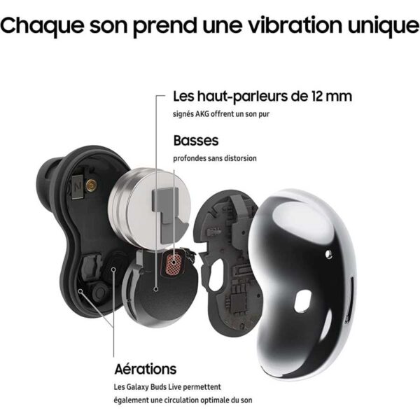 Samsung Galaxy Buds Live, écouteurs sans fil Bluetooth, Réduction active de bruit, batterie longue durée, son AKG – Noir