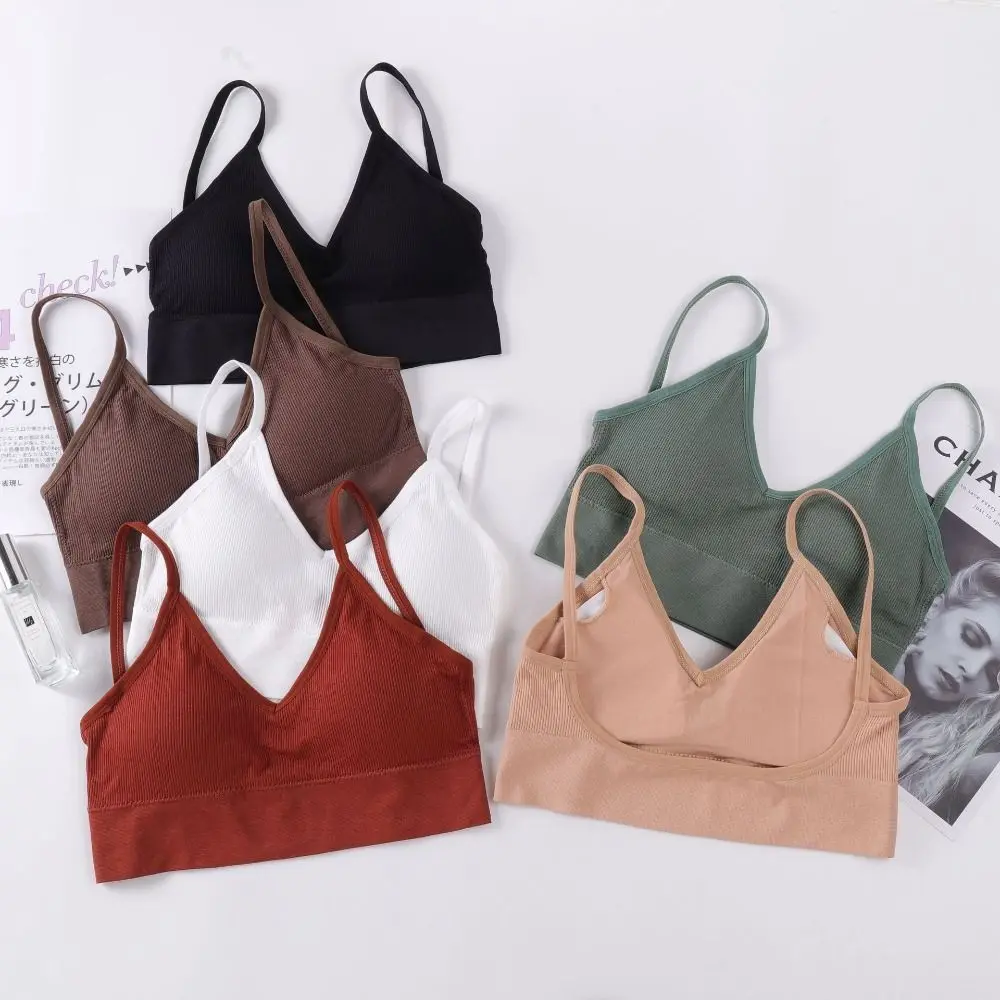 Soutien-gorge de sport push-up à fines bretelles pour femme, brassière de gymnastique, dos nu, sans couture, pour fille