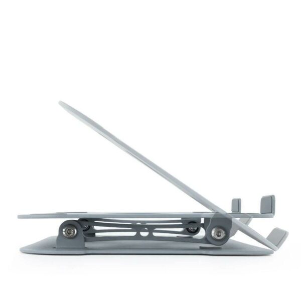 Le support pour ordinateur portable TooQ TQLRS0012-AL-G est un accessoire conçu pour offrir une solution pratique et ergonomique aux utilisateurs souhaitant améliorer leur posture et leur confort lors de l’utilisation d’ordinateurs portables ou de tablettes. Fabriqué en aluminium de haute qualité associé à des éléments en silicone, ce support se distingue par sa durabilité et sa légèreté, avec une finition grise apportant un aspect moderne et professionnel. Son design est pliable et réglable, permettant d’ajuster la hauteur entre 30 et 280 mm, avec une hauteur fixe de base de 50 mm, pour s’adapter aux besoins individuels et offrir un angle de vue optimal. Il accepte des appareils avec écran de 11” (27,9 cm) jusqu’à 17,3” (43,9 cm), compatible avec la majorité des laptops du marché. Avec des dimensions compactes de 260 mm de largeur sur 225 mm de profondeur et un poids de seulement 750 grammes, il est facile à transporter et à ranger, renforçant sa polyvalence pour un usage à domicile, au bureau ou en espaces collaboratifs. De plus, sa surface antidérapante garantit la stabilité de l’appareil durant l’utilisation, évitant les mouvements indésirables pouvant nuire au travail ou au matériel. Le support se distingue aussi par son emballage en boîte résistante aux dimensions adaptées pour faciliter sa distribution et son transport. Ce modèle TooQ est idéal pour les utilisateurs recherchant un support robuste et fonctionnel, favorisant la posture et améliorant l’expérience d’utilisation de l’ordinateur portable ou de la tablette sans sacrifier la commodité d’un design léger et portable. En résumé, le TQLRS0012-AL-G offre un équilibre entre ergonomie, qualité des matériaux et adaptabilité à une large gamme d’appareils.