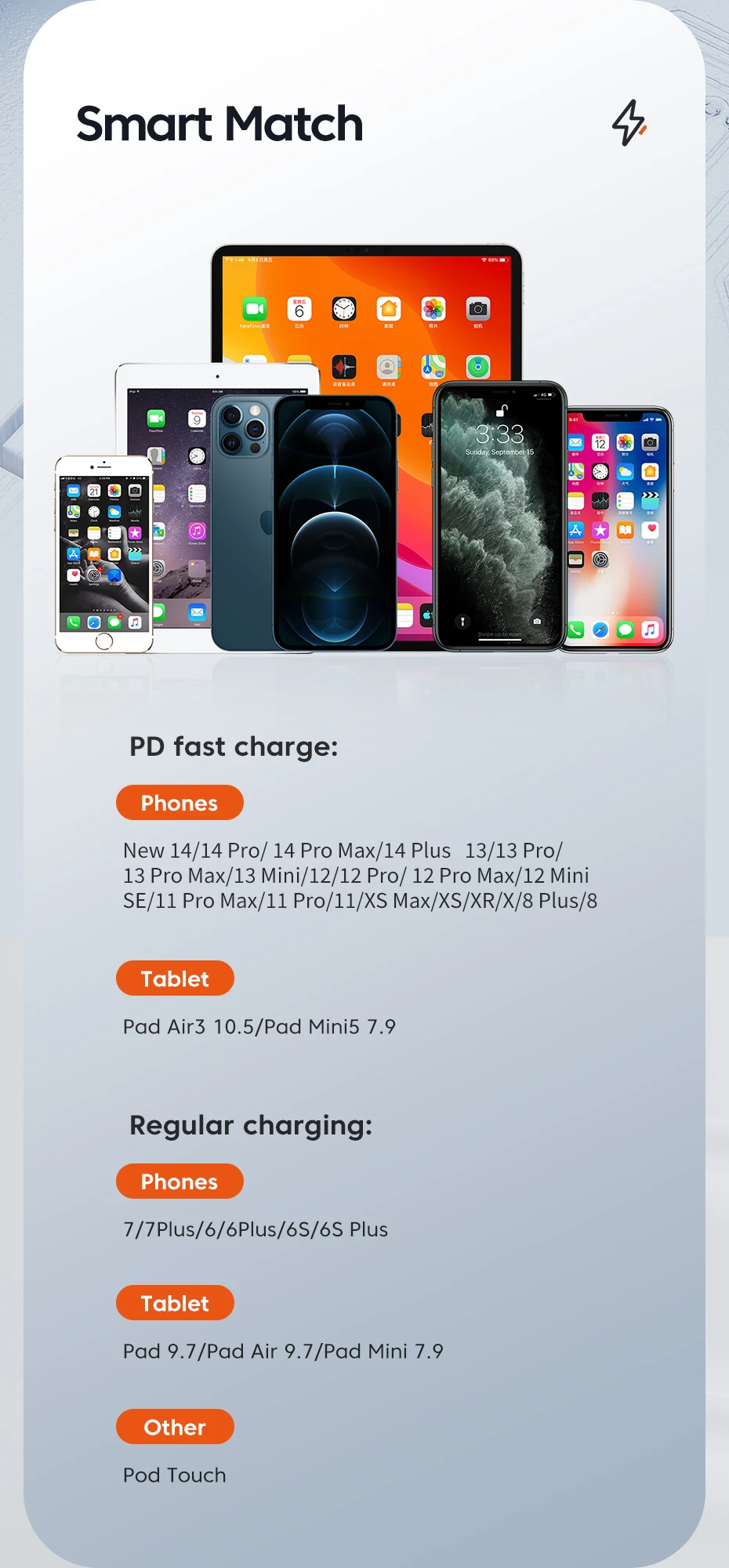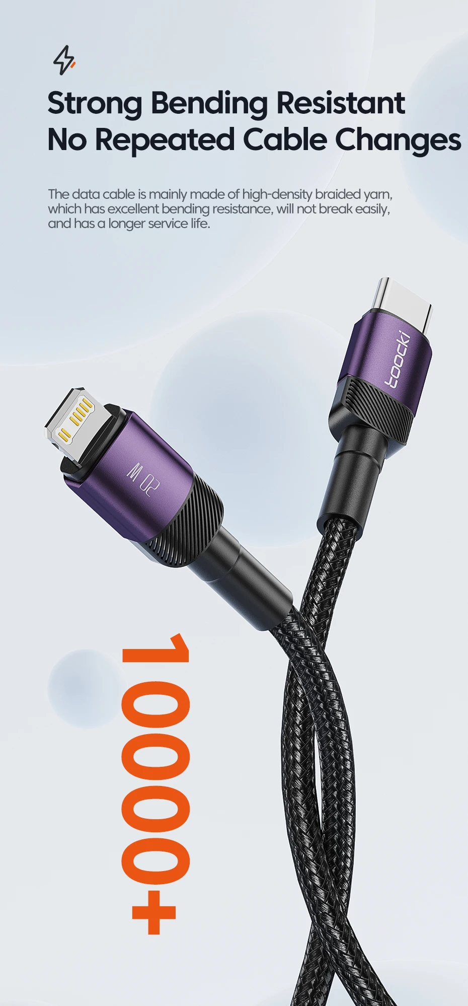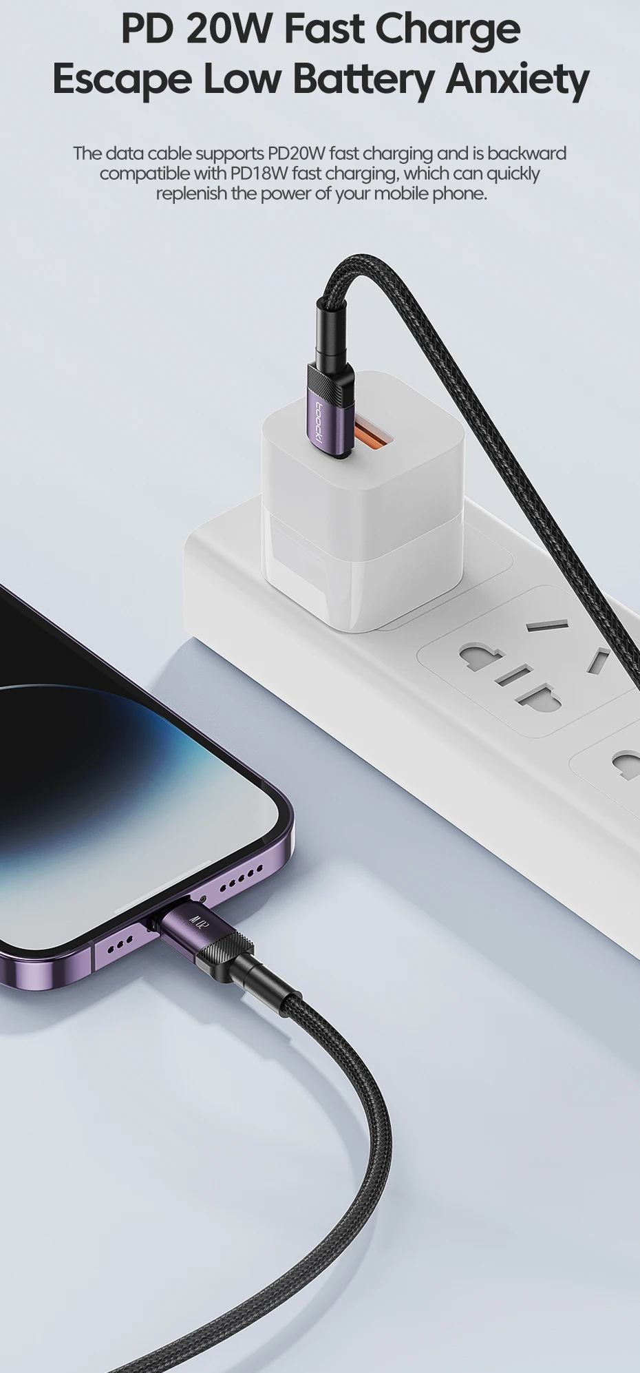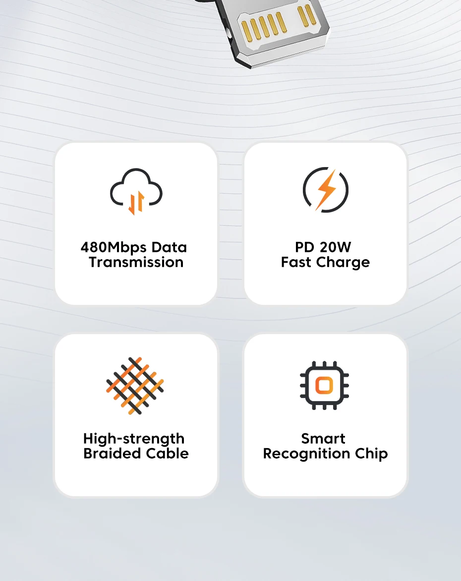 Le câble de données prend en charge la charge rapide PD20W et est rétrocompatible avec la charge rapide PD18W, qui peut rapidement reconstituer la puissance de votre téléphone mobile.