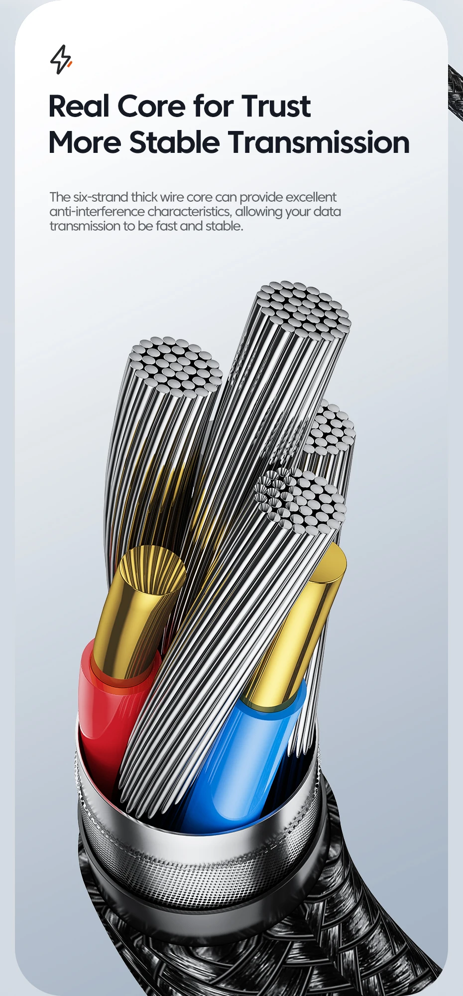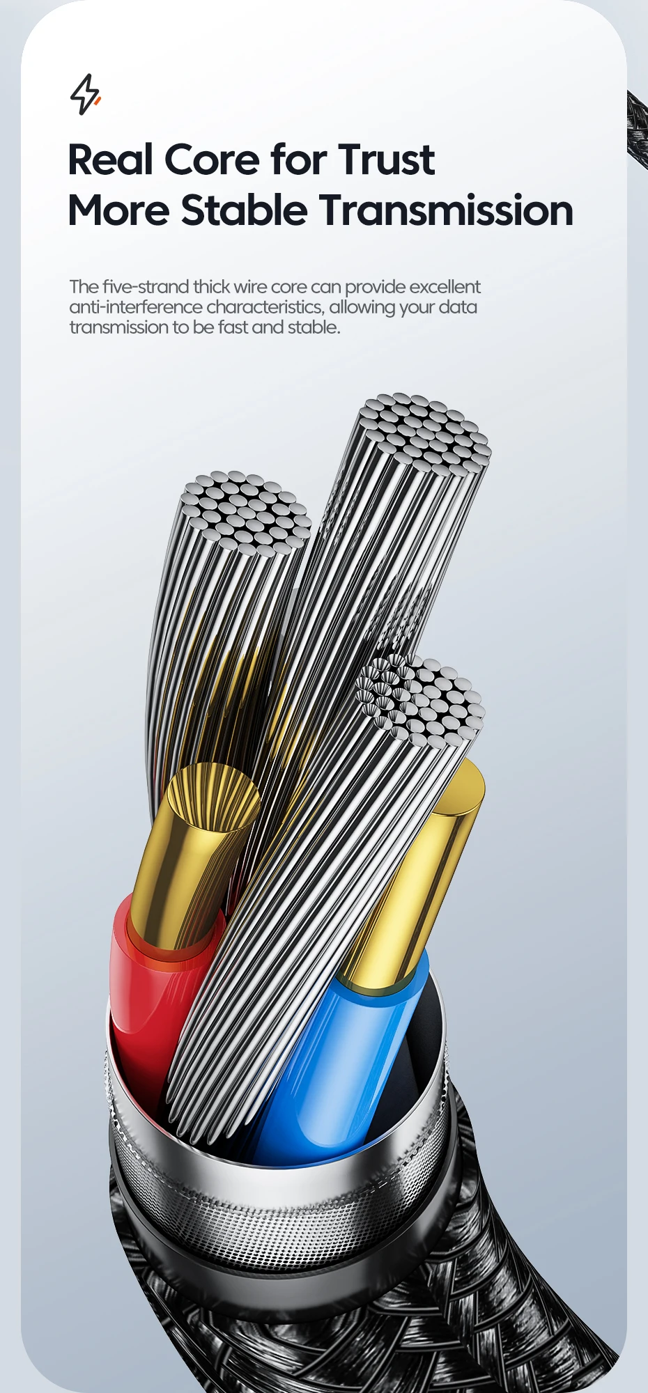Le noyau de fil épais à cinq brins peut fournir d’excellentes caractéristiques anti-interférence, permettant à votre transmission de données d’être rapide et stable.
