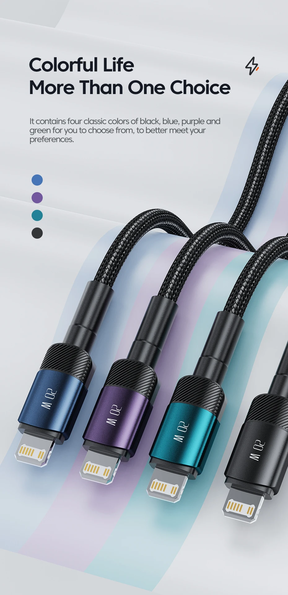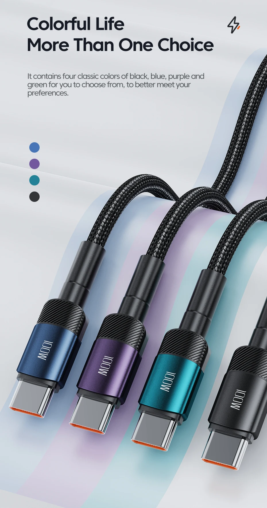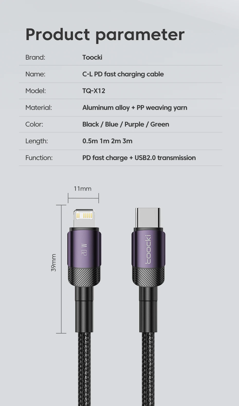 Couleur: noir, bleu, violet, vert Longueur: 0.5m 1m 2m 3m Fonction: PD60w charge rapide + transmission USB2.0