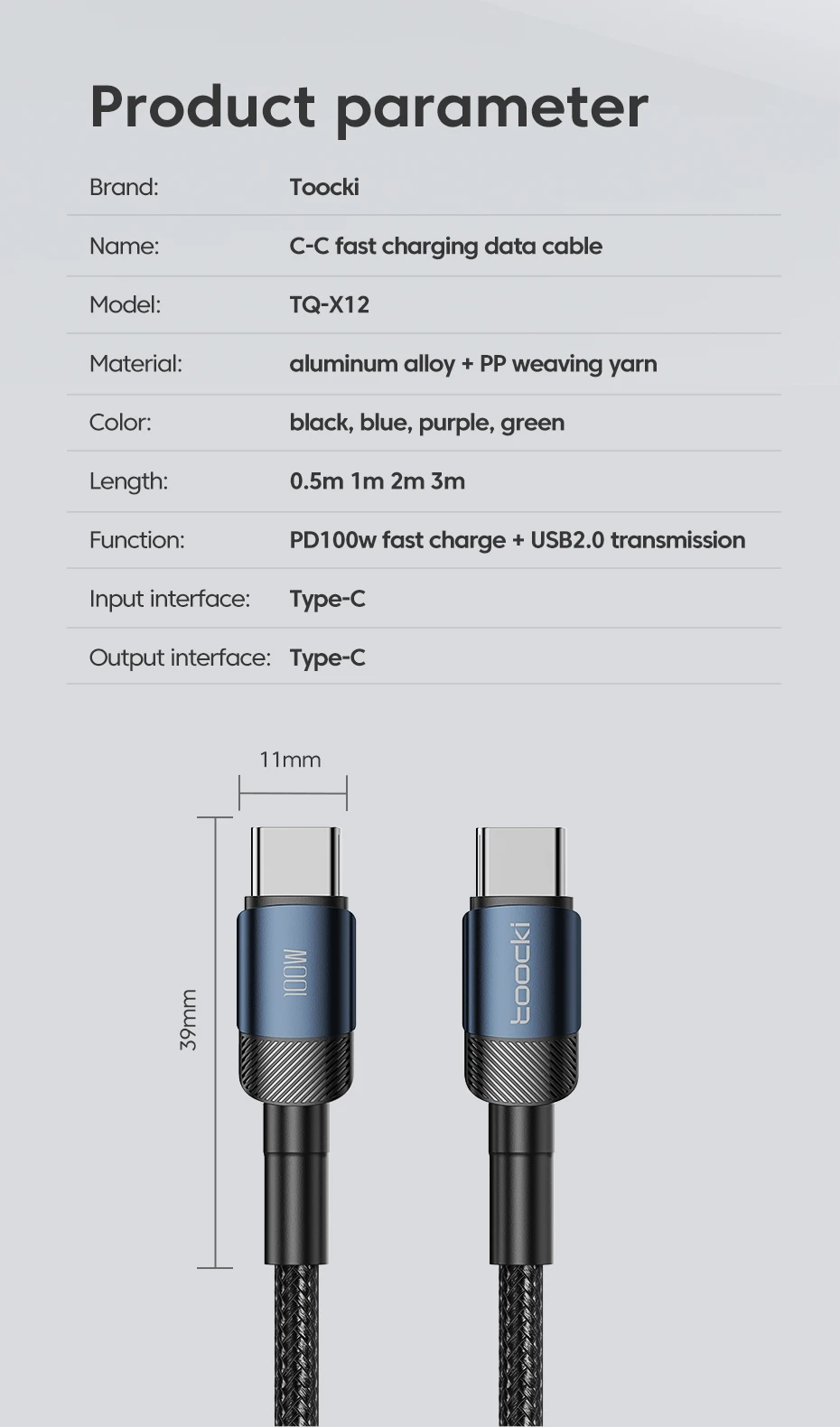 • Charge rapide USB Type C :Le câble Toocki avec connecteurs USB Type C offre une charge rapide et efficace pour vos appareils, réduisant ainsi le temps d’attente et augmentant la productivité.