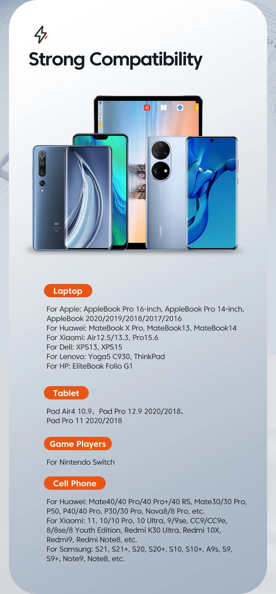 Il prend en charge la charge rapide haute puissance 100W, qui peut rapidement reconstituer la puissance de votre téléphone mobile.