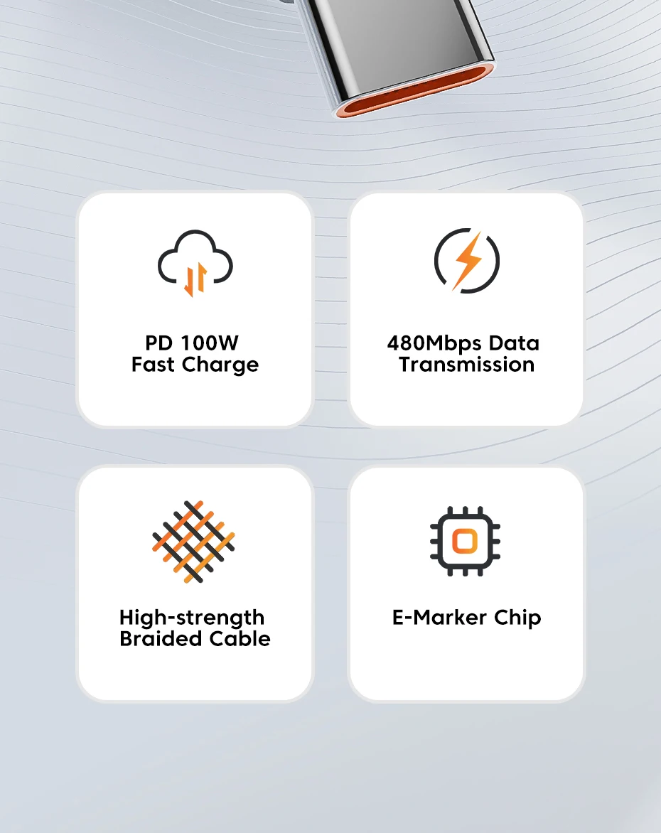 [USB-A à la charge rapide de Type-C 100W]Haute puissance 100W, puce intelligente, charge rapide entièrement compatible, transmission de données E-mark de 480Mbps