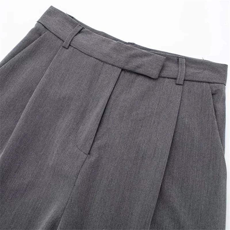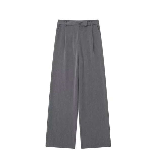 TRAF-Pantalon Baggy Taille Haute pour Femme, Jambes Larges, Beige, Gris, Noir, Mode Bureau, Été, FJJ, 2024