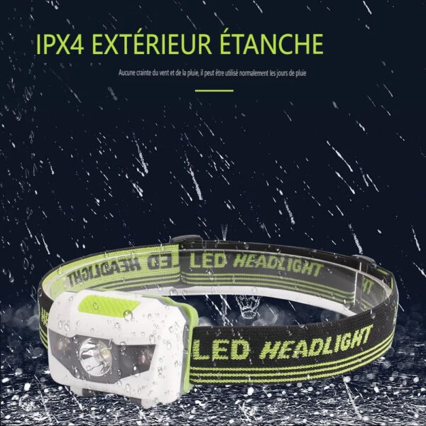 Taux d’étanchéité: IPX4, lumière frontale étanche à la pluie quotidienne