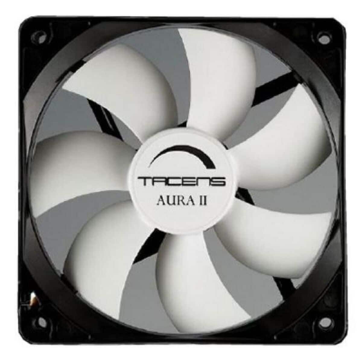 Tacens Aura II 12cm. Convient pour: Boitier PC, Type: Ventilateur, Diamètre du ventilateur: 12 cm. Couleur du produit: Noir, Blanc. Consommation électrique typique: 1,08 W, Courant nominal: 0,09 A. Poids: 98,5 g. Performance du ventilateur: 50 cfm, Exigences d’alimentation: 12VDC, Vitesse rotationnelle: 1200 tr/min