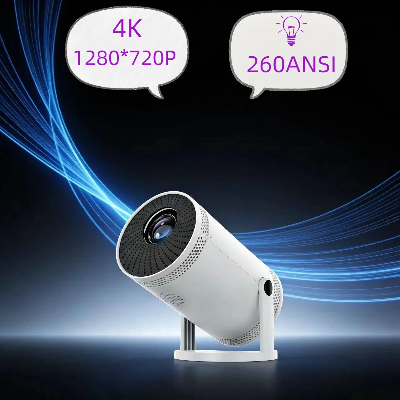 Ce vidéoprojecteur offre une résolution native HD 1280 × 720P et prend en charge les contenus 1080P et 4K. Par conséquent, vous profitez d’une image nette et fluide pour un usage quotidien. De plus, la technologie LED garantit une longue durée de vie tout en réduisant la consommation énergétique.