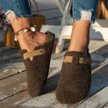 Mules en Fourrure pour Femme, Chaussures d’NikChaudes et Décontractées, Nouvelle Collection Hiver
