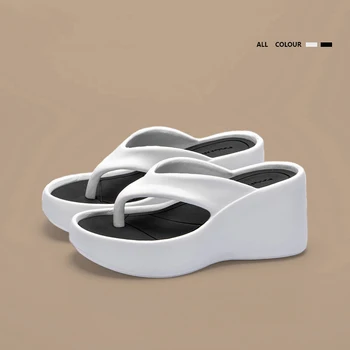 Tongs compensées à clip pour femmes, sandales de plage à plateforme épaisse, semelle optique, pantoufles brûleur à talons hauts, été 2024